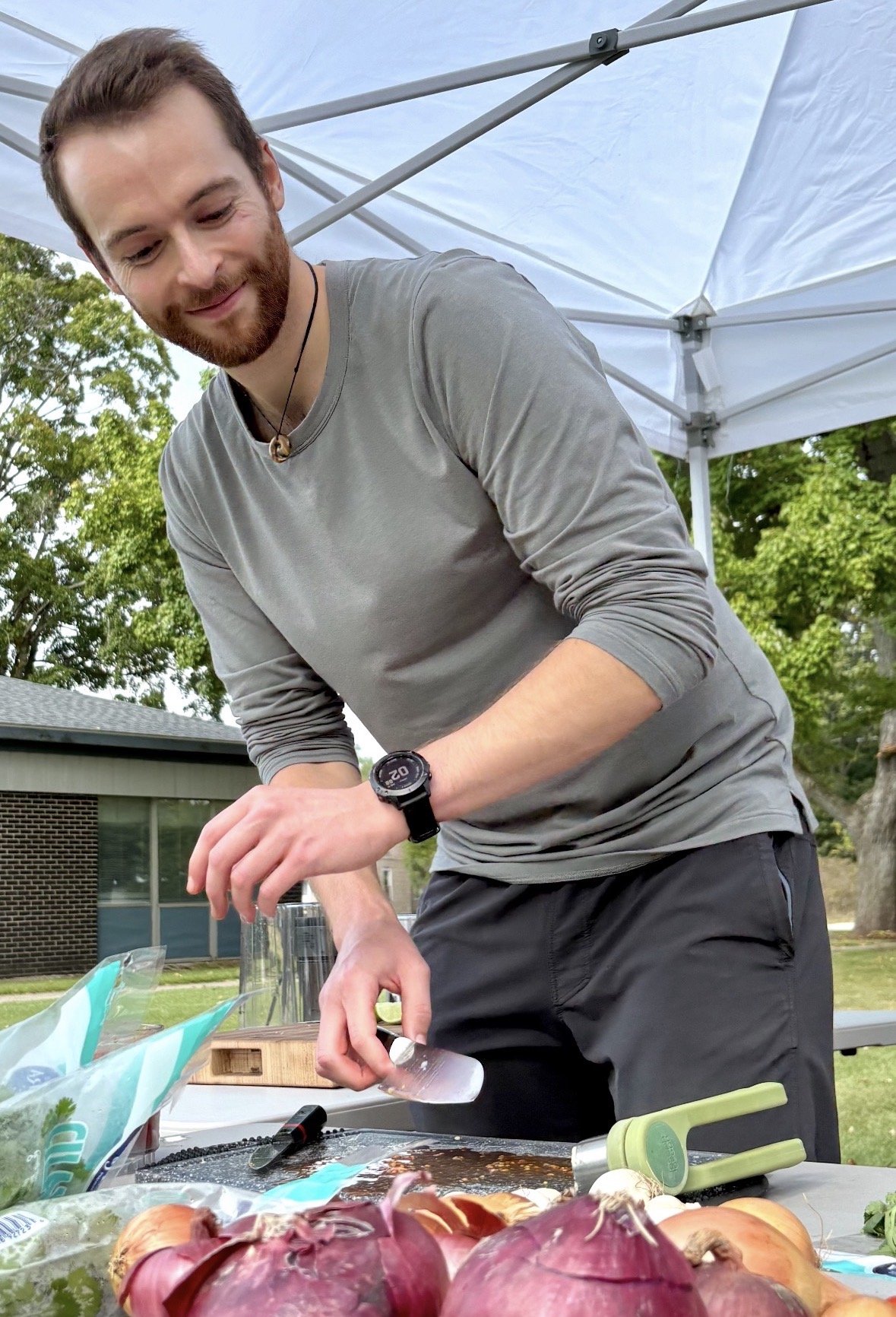 Dayton is a transplant from the Holland area that brings engineering and general construction skills to the Garden. He helped build and plant the 2025 garden, organized the salsa making event, modeled the 2026 garden layout, and helped to incorporate the Garden as a non-profit. In the coming years he is most excited to see all the new connections that grow, both interpersonal and with other organizations.